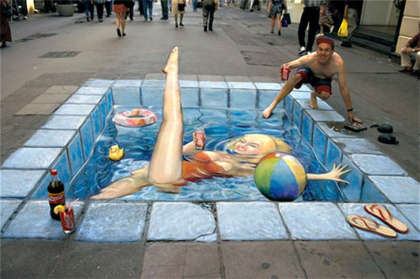 This was done by Julian Beever, a 3d sidewalk chalk artist. I was immideiately floored when i saw this. One of the coolest things ive ever seen.